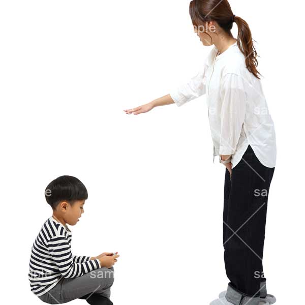 251001親子、幼児、母子、立つ、2人、幼児、男の子、ゲーム、地面に座る、室内、スリッパ、靴下、Parent and child, toddler, mother and child, standing, two people, toddler, boy, game, sitting on ground, indoors, slippers, socks