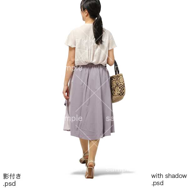 241110女性ショッピング、日本人、人物切り抜き素材、透過PNG,背景白、ショッピング、街、ショッピングセンター、買い物、女性、バッグ、半袖、昭和、スカート、ブラウス、ポニーテール、30代、歩く、夏、Japanese, person cutout, transparent PNG, white background, shopping, city, shopping center, shopping, woman, bag, short sleeves, Showa, skirt, blouse, ponytail, 30s, walking, summer