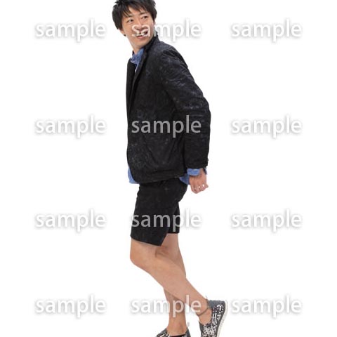 カジュアル、日本人、短パン、おしゃれ、歩く、振り向く、Casual, Japanese, shorts, stylish, walking, turning around