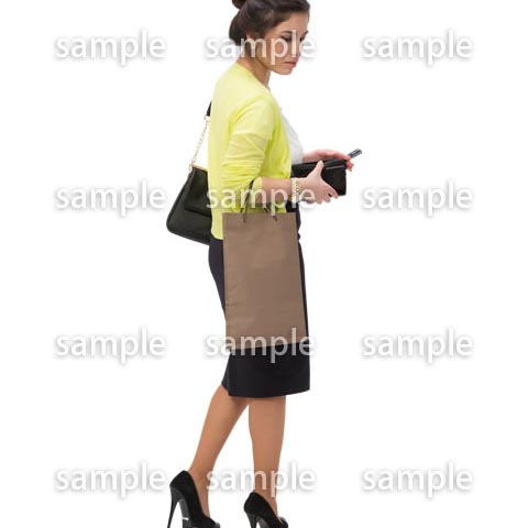 カジュアル、欧米人、外国人、女性、1人、黄色のカーディガン、ショッピング、立ち止まる、タイトスカート、まとめた髪、紙袋、Casual, Westerner, Foreigner, Female, Alone, Yellow cardigan, Shopping, Stopping, Tight skirt, Hair tied up, Paper bag