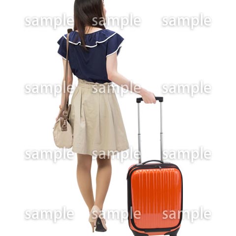 カジュアル、日本人、 半袖、紺のトップス、キャリーバッグ、スーツケース、旅行、リゾート、スカート、美人、黒髪、女性、Casual, Japanese, short sleeve, navy blue top, carry bag, suitcase, travel, resort, skirt, beauty, black hair, woman