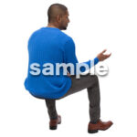 カジュアル、欧米人、外国人、座る人、男性、黒人、アフリカ人 、青いニット、話す、ジェスチャー、casual, Westerner, foreigner, person sitting, male, black person, African person, blue knit, speaking, gesture