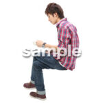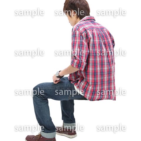 カジュアル、日本人、座る人、男性、 チェックのシャツ、ジーンズ、学生、Gパン、若者、10代、大学、手振り身振り、話す、Casual, Japanese, person sitting, man, checked shirt, jeans, student, G pants, young man, teenager, university, hand gesture, speaking