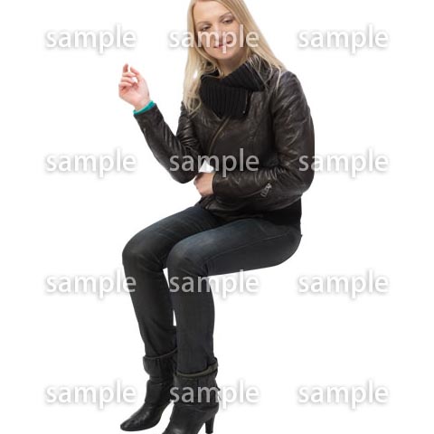 カジュアル、欧米人、外国人、座る人、女性、白人、金髪、黒い服、かっこいい、ブーツ、モノトーン、Casual, Westerner, Foreigner, Sedentary, Female, Caucasian, Blonde, Black clothes, Cool, Boots, Monotone