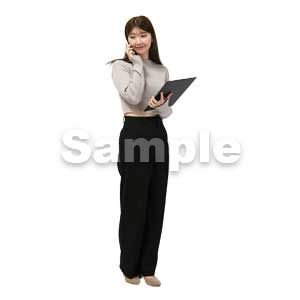 日本人、女性、ビジネスウーマン、スーツ、黒色、電話、スマホ、連絡、話す、立ち止まる、30代、オフィス、レセプト、受付、Japanese, woman, business woman, suit, black, telephone, smartphone, contact, talk, stop, 30s, office, receipt, reception