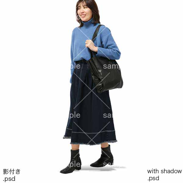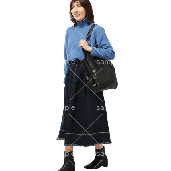 日本人、女性、ニット、青色、学生、ロングスカート、冬、ハイネック、歩く、ブーツ、冬、20代、Japanese, woman, knit, blue, student, long skirt, winter, high neck, walking, boots, winter, 20s
