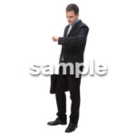 キーワード:ビジネス、男性、1人、立ち止まる、黒色ジャケット、スーツ、外国人、白人、欧米人、スマホ