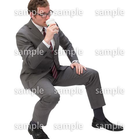 座る、欧米人、白人、グレースーツ、紙コップ、飲む、飲み物、男性、一人、ビジネス、ネクタイ、メガネ、SSitting, Westerner, Caucasian, Gray suit, Paper cup, Drinking, Drink, Man, Alone, Business, Tie, Glasses