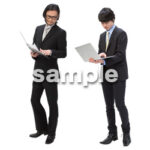 日本人、ビジネス、2人、オフィス、男性、立ち止まる、書類に目を通す、メガネ、打ち合わせ、ミーティング、立ち話、スーツ、背広、ネクタイ、上司、PC,Japanese, business, two people, office, man, stopping, looking through documents, glasses, meeting, meeting, standing conversation, suit, suit, tie, boss
