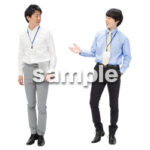 日本人、ビジネス、2人、オフィス、男性、同僚、上司、ワイシャツ、社員証、ネームプレート、話す、打ち合わせ、社内、雑談、休憩、Japanese, business, two people, office, male, coworker, boss, shirt, employee ID, nameplate, talking, meeting, office, chat, break