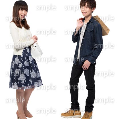 日本人、ショッピング、買い物、都会、花柄スカート、紙袋、カップル、立ち止まる、ジーンズ、Japanese, shopping, shopping, city, floral pattern skirt, paper bag, couple, stopping, jeans,