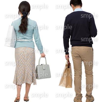 日本人、ショッピング、買い物、都会、夫婦、チノパン、紙袋、水色、黒色、バッグ、手を出す、Japanese, shopping, shopping, city, couple, chino pants, paper bag, light blue, black, bag, hands out,