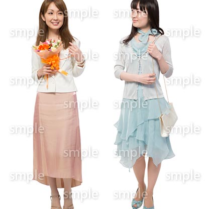 日本人、ドレス、都会、花束、パーティー、エレガント、ヒール、水色、女性、二人、Japanese, dress, city, bouquet, party, elegant, heels, light blue, woman, two people,