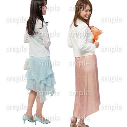 日本人、ドレス、都会、花束、パーティー、エレガント、ヒール、水色、女性、二人、Japanese, dress, city, bouquet, party, elegant, heels, light blue, woman, two people,
