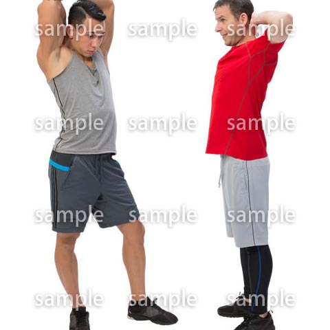 スポーツ、運動、男性、マッチョ、筋肉、鍛える、ストレッチ、赤色、ハーフパンツ、白人、欧米人、外国人、ジム、ライザップ、ウェイトトレーニング、Sports, exercise, men, macho, muscles, training, stretching, red, shorts, white, Westerners, foreigners, gym, rise, weight training,